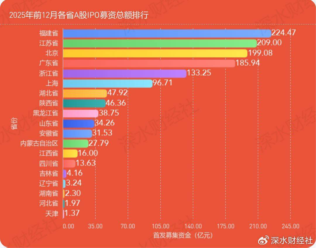 此外,江苏各地还通过成立上市企业培育库、举办IPO专题培训、协调处理企业上市过程中的地盘、环保等问题,为后备军企业供给全流程支撑。 数据显示,2025年,姑苏新增A股上市公司12家,新增数量初次位居全国各城市第一,正在2025年全国新增A股上市公司中的占比达10。34%,意味着每10只新股中就有1只来自姑苏。 从募资额来看,2025年江苏A股募资总额为209亿,仅次于福建224。47亿,排正在全国第二。 江苏上市公司的后备军阵容也常强大,江苏还有65家企业正在A股列队上市,仅次于广东排正在全国第二位。