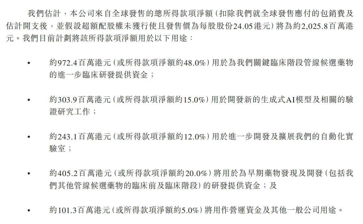 此中,48%的资金将用于环节临床阶段管线候选药物的进一步临床研发,其他资金还将用于留住或招募25-30名AI人才,正在阿联酋采办35-45台办事器以及采购300-350颗芯片等。