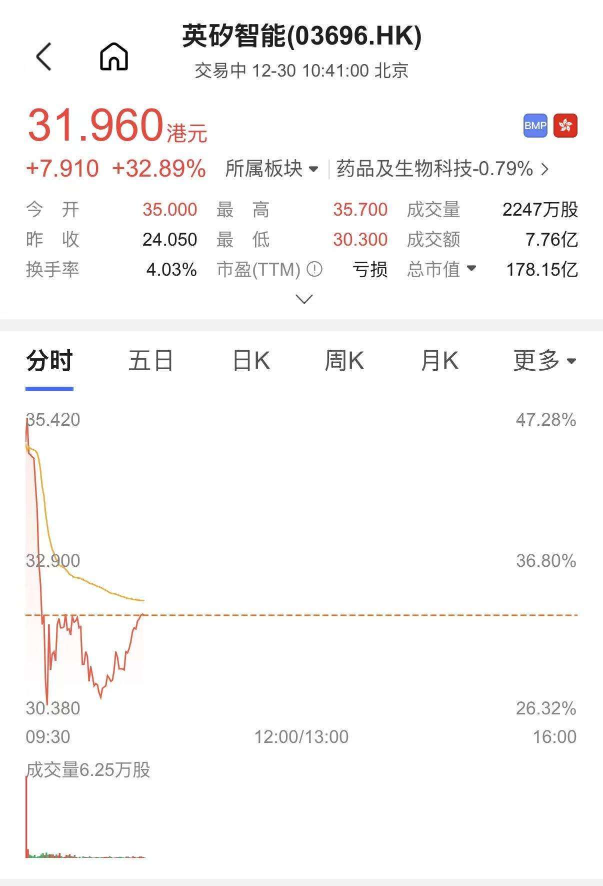 据招股书,该公司的生成式AI平台取自从药物研发能力构成了闭环,英矽智能操纵Pharma。AI,候选药物从靶点发觉到了临床前候选药物确认仅需12-18个月,而操纵保守的方式需要4。5年,是英矽智能的约3倍。 英矽智能发售价为24。05港元(约合人平易近币21。68元)/股,为35。00港元(约合人平易近币31。55元)/股。截至10点40分,英矽智能股价上涨32。89%,为?。